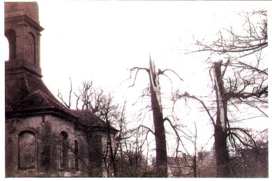 dann aber an den neben der Kirche stehenden Lindenbäumen. Alle vier
