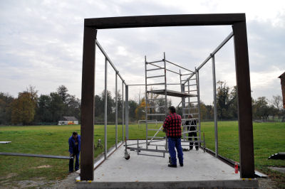 Ihre alte Garage musste dem Neubau weichen und kam nach Reuden.